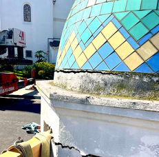 For generations, the iconic mosaic dome of The Congregational Church of Christian Fellowship has crowned our bell tower—standing as a beacon of hope and a visible reminder that the church is present, open, and available to all in our community. Installed during the original construction of the church, the dome became part of the neighborhood’s visual and spiritual landscape. During the pandemic, however, concerned calls began coming in as members and neighbors noticed the dome leaning—a moment Pastor McKnight lightheartedly dubbed “The Leaning Tower of Christian Fellowship,” all the while realizing the situation called for urgent care.